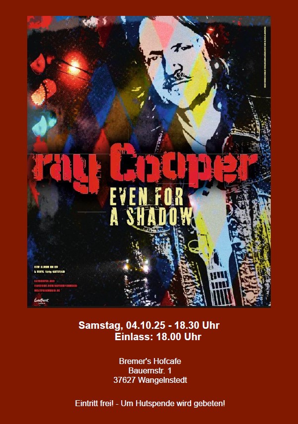 Mit seinem zweiten Soloalbum “Palace Of Tears” verpflichtete sich Ray Cooper endgültig der ehrwürdigen Singer/Songwriter-Tradition, indem er eigene Texte und Kompositionen in den Fokus rückte. Cooper, seit einigen Jahren Wahl-Schwede, schöpft textlich zum Teil aus skandinavischen Quellen und bedient sich Cello, Gitarre, Harmonika, Mandoline und Piano.