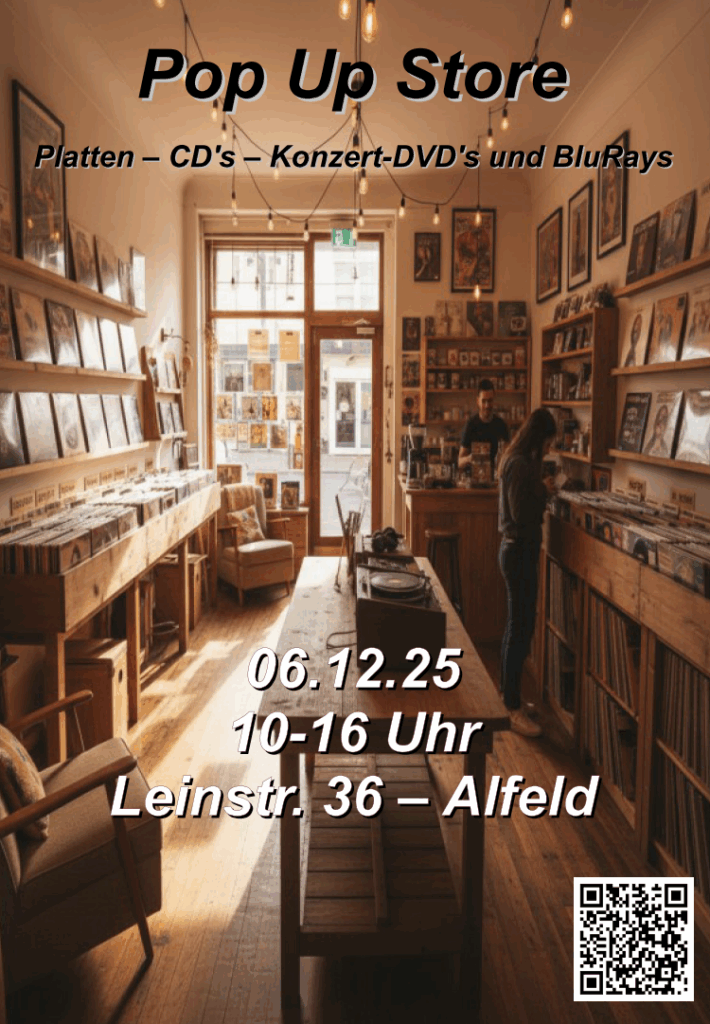 Das Konzept des eintägigen Pop Up Stores wurde bisher sehr gut von zahlreichen Musiksammlern angenommen und wir freuen uns, wieder einen solchen Store in Alfeld eröffnen zu können.
